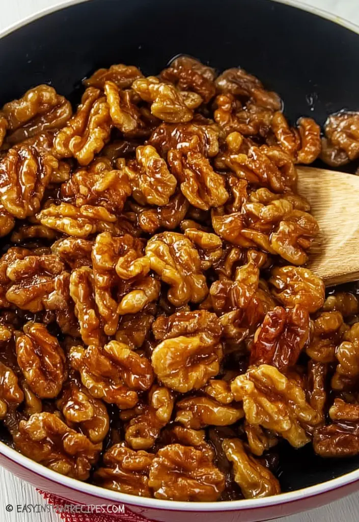 Spicy Caramel Walnuts: Add a pinch of cayenne pepper to the caramel while it cooks. The heat is subtle — just a gentle warmth that hits after the sweetness — and it makes these dangerously snackable with cocktails or beer.