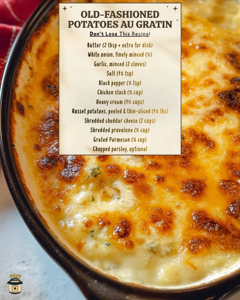 Potatoes au gratin is one of those dishes that feels timeless. It belongs to old kitchens and big tables, where comfort food mattered more than shortcuts. This recipe honors that tradition while keeping the process simple and approachable. No special tools. No complicated techniques. Just a pot, a baking dish, and a method that works.