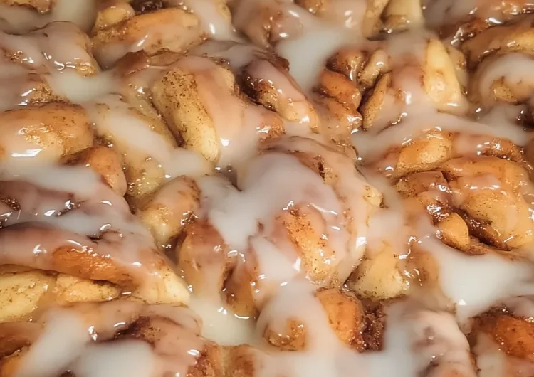 The key is mixing gently. Overmixing can flatten the dough pieces. You want the cinnamon rolls coated but still distinct.
