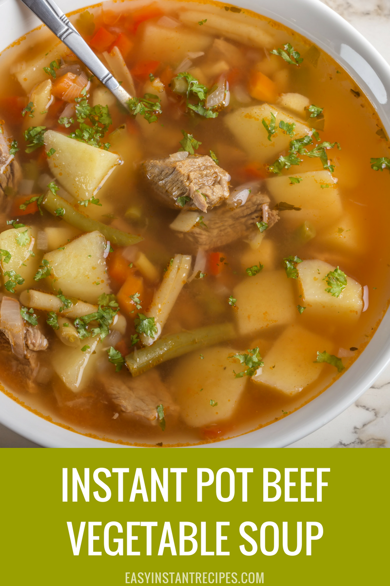 Inside: Make this Instant Pot Vegetable Beef Soup for a quick hearty and healthy meal! You can even make this with leftovers!