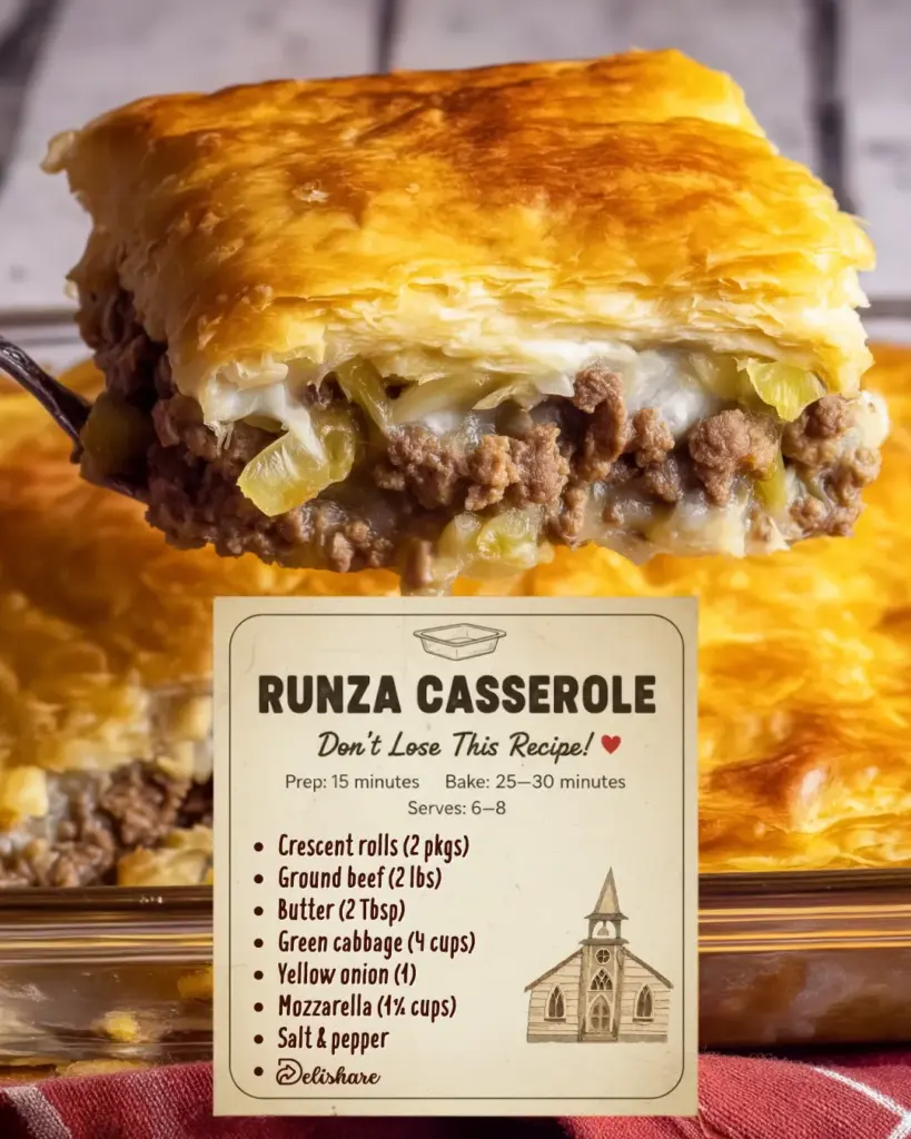 Runza Casserole takes everything great about the classic Nebraska-born runza—seasoned ground beef, tender cabbage, and soft bread—and turns it into an easy, crowd-friendly bake. No hand-folding individual pockets. No fussy dough. Just layer, bake, and serve. It’s the kind of weeknight recipe that earns a permanent spot in the rotation.